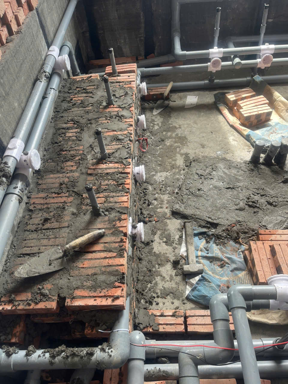 Chừa lỗ kỹ thuật: cho đường ống cấp, thoát, và vị trí gắn jets sục.