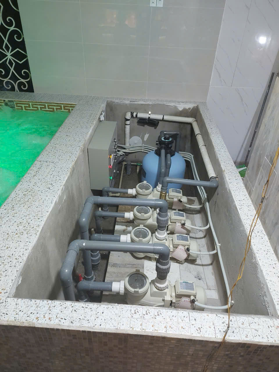 Máy bơm & máy thổi khí: đặt trong phòng kỹ thuật hoặc hộc riêng gần bể.